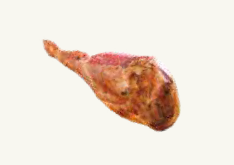 スペインのグルメを代表する一品。白豚を原料に、豚肉の後ろ足を塩漬けにして乾燥、長期間熟成させてつくる生ハム。昔は山間部(セラーノ)で作られたのでこの名がある。熟成が⻑いほど柔らかい味となる。